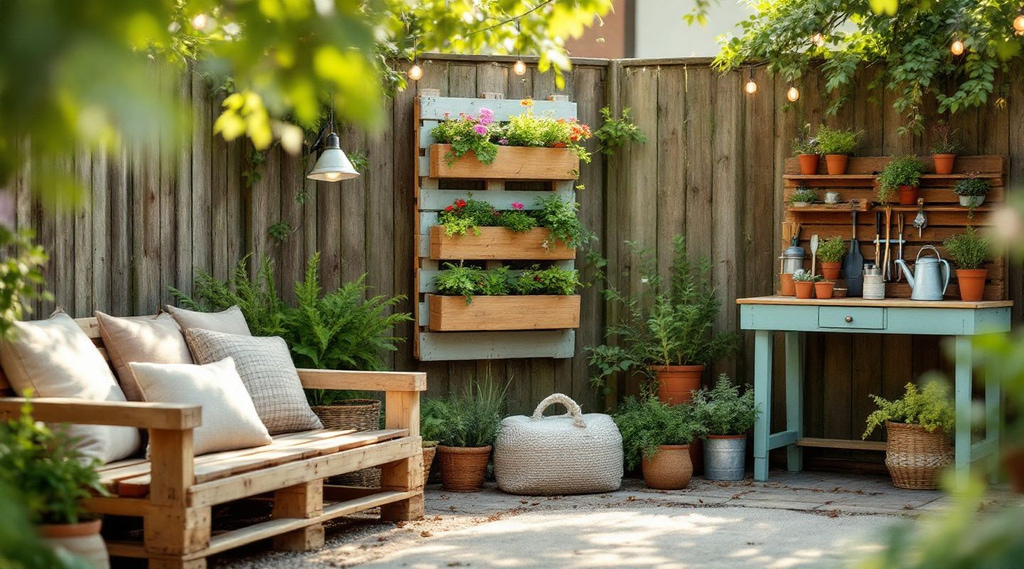 Οι ξύλινες παλέτες είναι ίσως το πιο ευέλικτο υλικό στην εξωτερική διακόσμηση. Μπορείτε να τις μετατρέψετε σε rustic καθίσματα, κάθετους κήπους, ακόμα και σε πάγκο φύτευσης.
