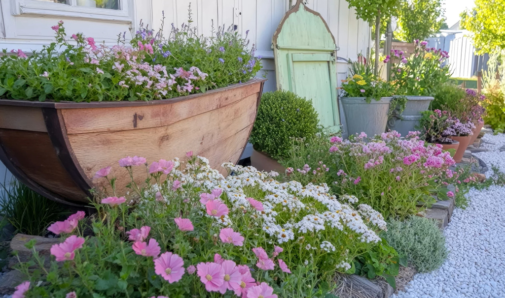 Γιατί να ξοδέψουμε μια περιουσία σε διακοσμητικά, όταν υπάρχει ένας ολόκληρος κόσμος από δημιουργικές δυνατότητες ανακύκλωσης; Φανταστείτε μια παλιά ξύλινη πόρτα που γίνεται παραμυθένια πύλη για τον κήπο σας ή παλιές ρόδες ποδηλάτου που μεταμορφώνονται σε πέργκολες για αναρριχώμενα φυτά.