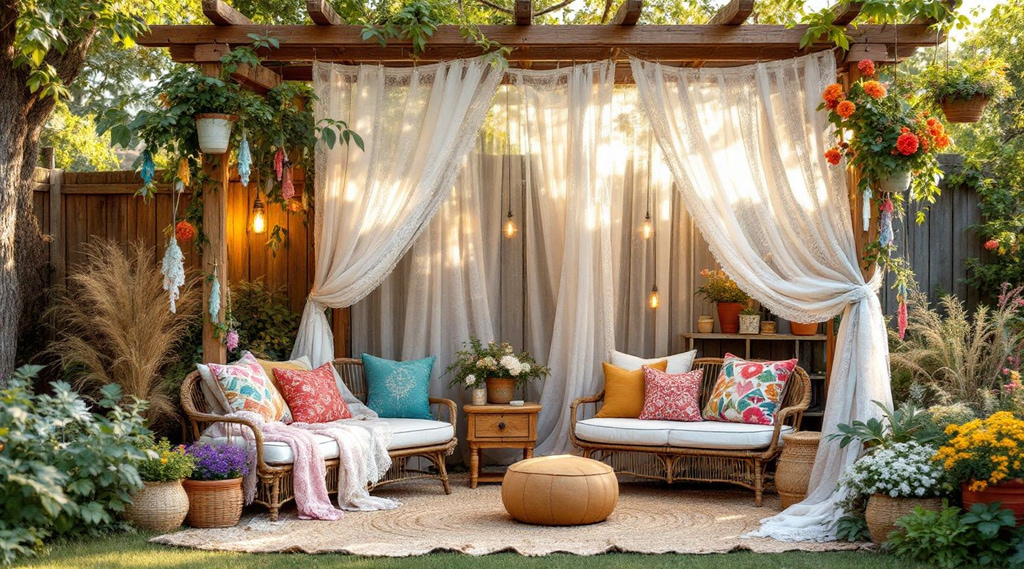 Για τους λάτρεις του boho chic στυλ, τα παλιά υφάσματα μπορούν να γίνουν υπέροχα στοιχεία διακόσμησης εξωτερικού χώρου.