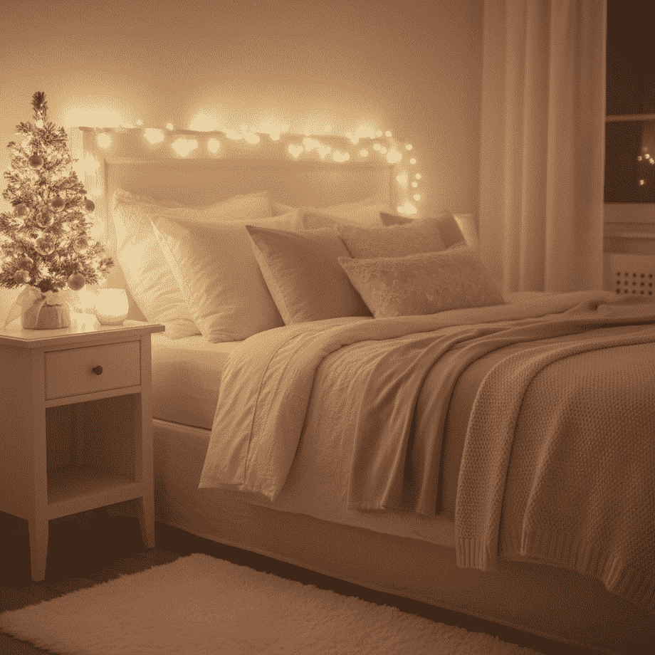 Δημιούργησε μια ρομαντική χριστουγεννιάτικη κρεβατοκάμαρα με απαλό φωτισμό, μαλακά υφάσματα και διακριτική διακόσμηση