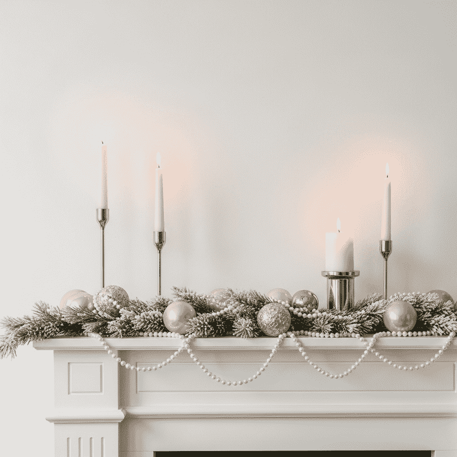 Ξεκίνα με μια λευκή ή χιονισμένη γιρλάντα πάνω στο τζάκι. Άφησέ τη να πέφτει ελαφρά και πρόσθεσε ροζ κορδέλες, περλέ χάντρες και λίγα απαλό ροζ στολίδια. Η γιρλάντα πρέπει να δείχνει πλούσια, αλλά όχι «στημένη».