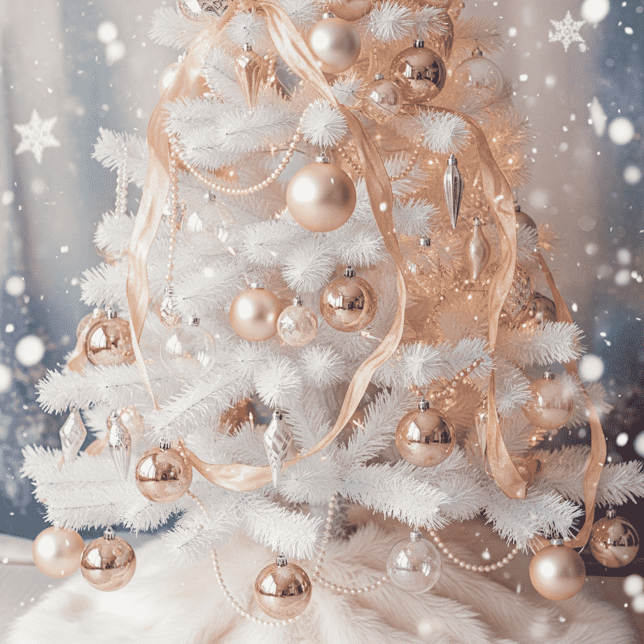 Ένα λευκό ή ελαφρά χιονισμένο δέντρο είναι ιδανική βάση για ροζ στολίδια. Δείχνει σαν να είναι ήδη καλυμμένο με χιόνι, οπότε τα ροζ, περλέ και σαμπανιζέ στοιχεία ξεχωρίζουν όμορφα.