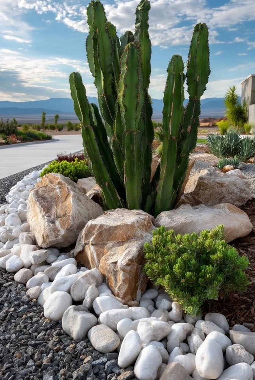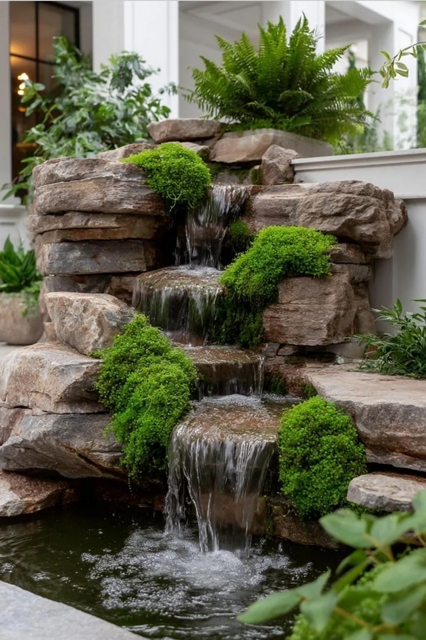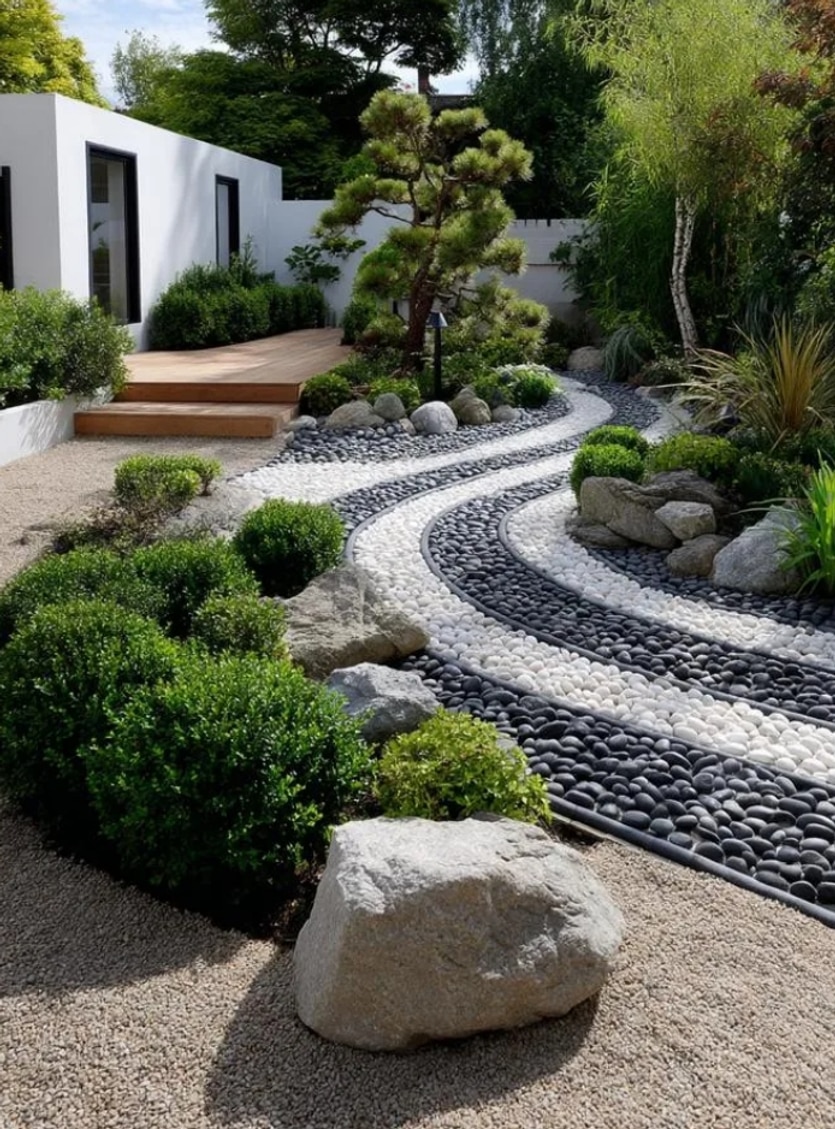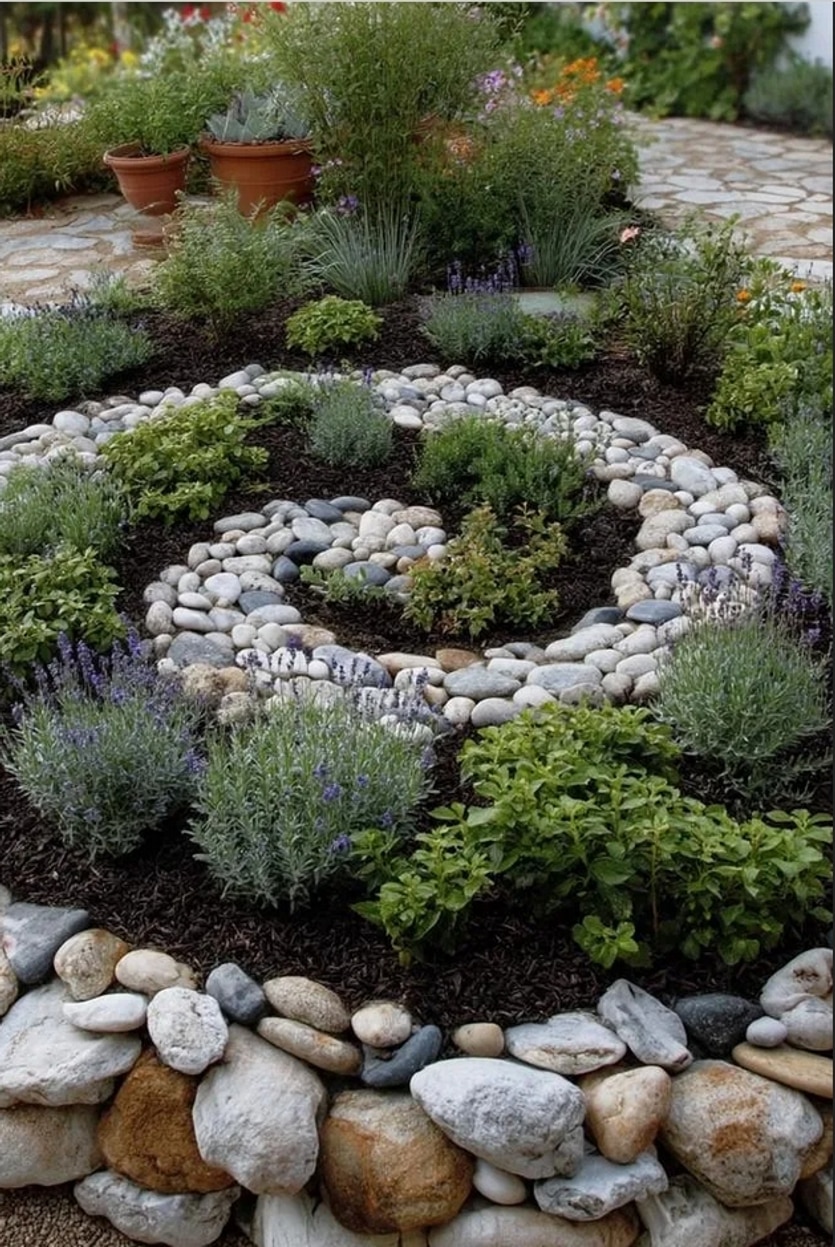 Η ποικιλία υλικών είναι το κλειδί για ένα μοναδικό αποτέλεσμα. Χρησιμοποιήστε μεγάλες πέτρες ως σημεία εστίασης, μικρότερα βότσαλα για αντίθεση, και χαλίκι για το φόντο. Προσθέστε ξύλινα στοιχεία (όπως κορμούς ή παλιά κιβώτια), κεραμικά αγγεία ή ακόμα και κομμάτια μεταλλικών αντικειμένων για πιο ρουστίκ ή βιομηχανικό στυλ.