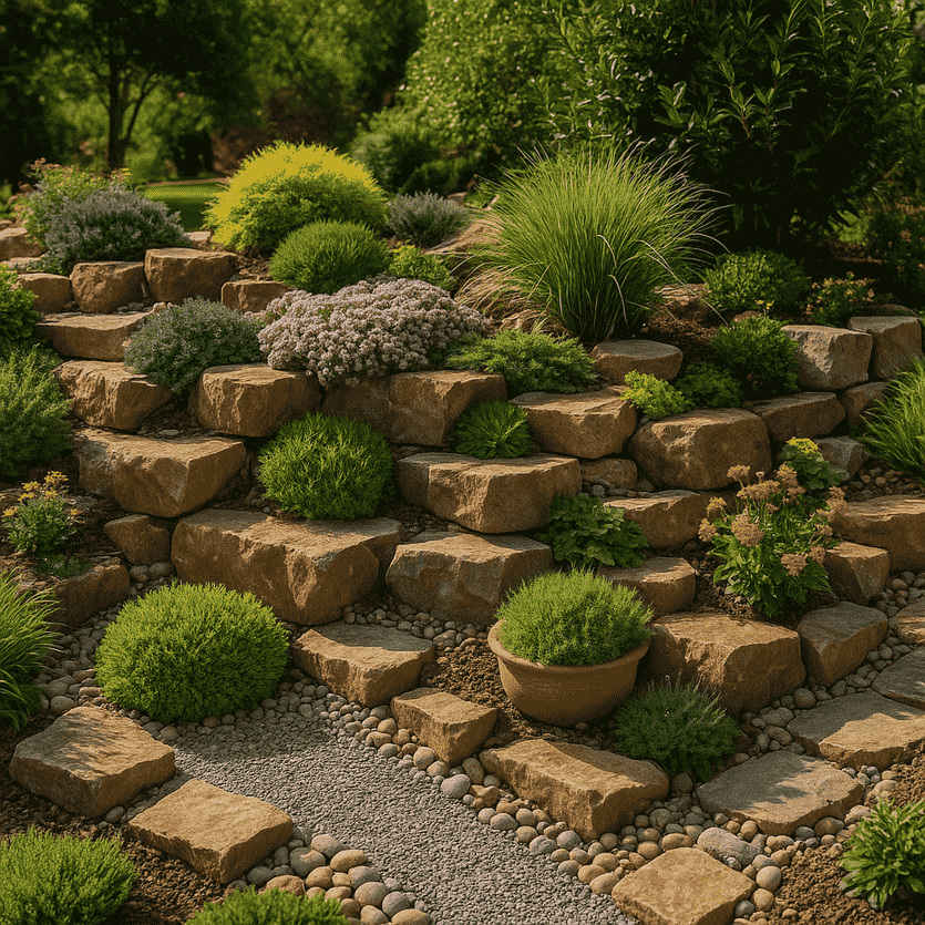 Αυτός ο τύπος κήπου έχει τις ρίζες του σε παραδοσιακές τεχνικές διαμόρφωσης τοπίου, όπου η φυσική πέτρα χρησιμοποιείται όχι μόνο διακοσμητικά αλλά και λειτουργικά — συγκρατώντας το χώμα, αποστραγγίζοντας νερά και υποστηρίζοντας τη ζωή ανθεκτικών φυτών.