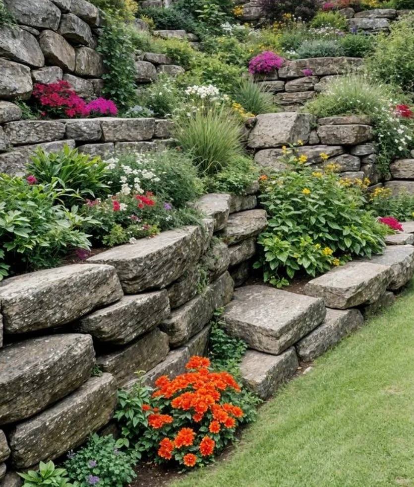 Πέτρες σε διάφορα μεγέθη: Μεγάλες για δομική στήριξη και μικρότερες για διακόσμηση και πλήρωση κενών.