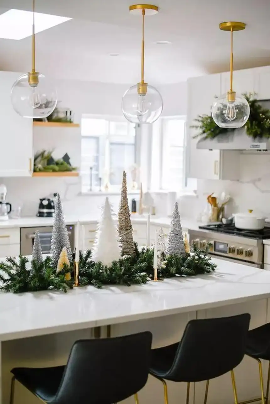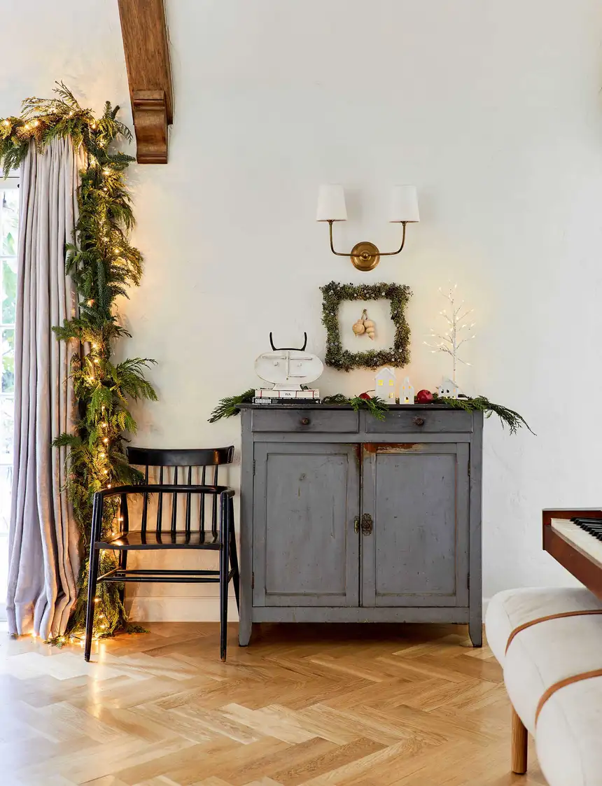 Στο σαλόνι, συνδύασε μαλλινά ριχτάρια με κεραμικά κηροπήγια και γυάλινα στολίδια. Στην τραπεζαρία, στρώσε λινό τραπεζομάντιλο και πρόσθεσε κλαδιά ευκαλύπτου για άρωμα και όγκο. Στην είσοδο, ένα στεφάνι από πεύκο και ένα χαμηλό κεραμικό βάζο αρκούν για καλωσόρισμα.