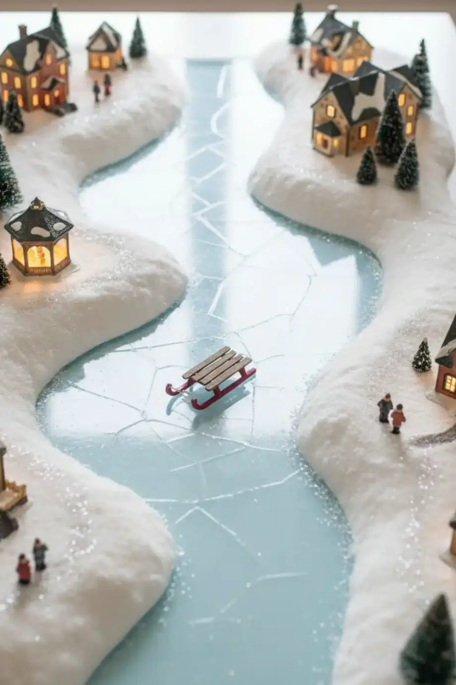 Οι μικρές φιγούρες κάνουν το χωριό ζωντανό. Πρόσθεσε παιδάκια που πατινάρουν, μινιατούρες καρουζέλ, τρενάκια, ακόμα και ψεύτικα γλυκά σαν ζαχαρωτά σε βιτρίνα.